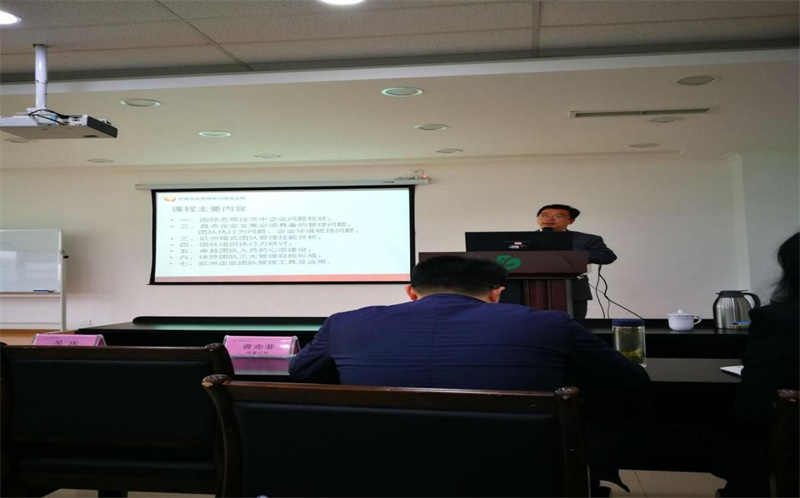 徐雨教授運用舉例的方式生動地描述、講解企業(yè)管理、團隊管理問題,員工都在認真做筆記,徐雨教授正在闡述課程主要內(nèi)容。